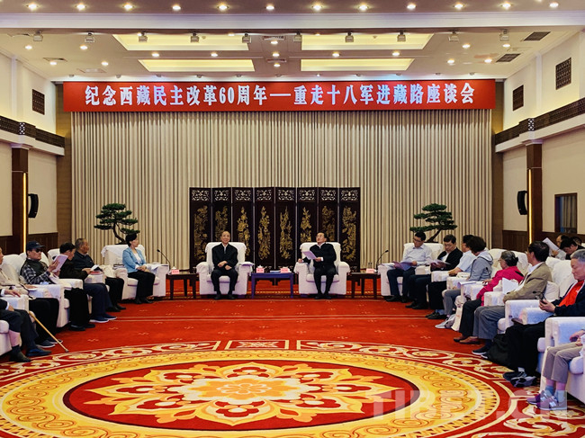 中國西藏網(wǎng)訊 5月28日,由中國西藏文化保護(hù)與發(fā)展協(xié)會(huì)、四川省委統(tǒng)戰(zhàn)部主辦,四川省委藏區(qū)辦、中國西藏雜志社承辦的“紀(jì)念西藏民主改革60周年——重走十八軍進(jìn)藏路”座談會(huì)在四川省成都市舉行。中央統(tǒng)戰(zhàn)部有關(guān)領(lǐng)導(dǎo)、四川省委省政府有關(guān)領(lǐng)導(dǎo)、十八軍老戰(zhàn)士及其后代、涉藏研究知名專家學(xué)者、四川省直有關(guān)單位和藏區(qū)有關(guān)州縣負(fù)責(zé)同志、新聞媒體共約100余人參加此次會(huì)議。四川省委常委、統(tǒng)戰(zhàn)部長田向利主持會(huì)議。