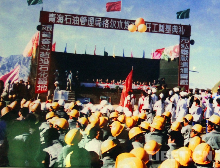 圖為1991年8月1日,格爾木煉油廠開工奠基典禮隆重舉行