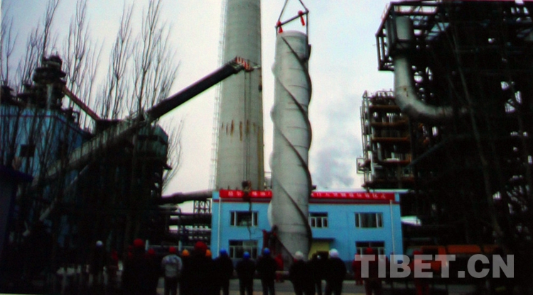 圖為2014年11月21日,催化煙氣脫硫裝置煙道吊裝現(xiàn)場。環(huán)保治理工程的建成投產(chǎn),大幅度降低了“三廢”排放,保護了青藏高原的碧水藍天