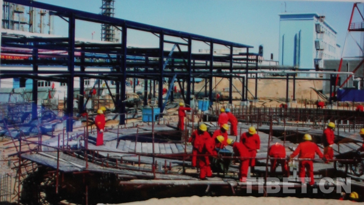 圖為2008年3月,酸性水汽提及硫磺回收裝置土建工程全面展開