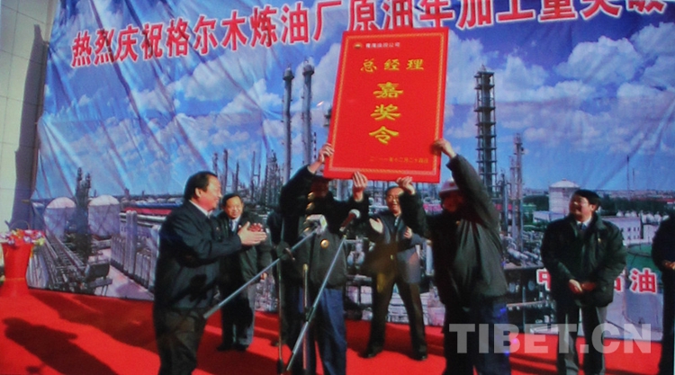 圖為2011年12月24日,格爾木煉油廠年原油加工量突破150萬噸