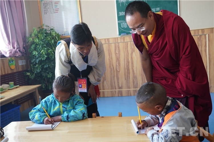 在寬敞明亮的教室里,十一世班禪看望了福利院的孩子們,看到兒童福利院的員工們耐心周到的工作作風(fēng),孩子們穿著整齊漂亮的民族服裝,生活在溫馨舒適的生活環(huán)境里,受到體貼入微的照顧和良好的教育,十一世班禪感到十分高興和感動(dòng)。十一世班禪說(shuō):“學(xué)校環(huán)境很好,要好好學(xué)習(xí),將來(lái)才能更好地建設(shè)家鄉(xiāng)?!?/p>