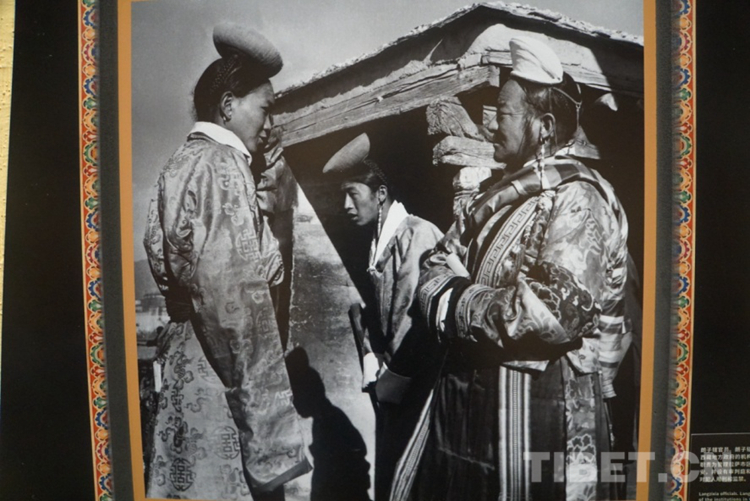 圖為西藏地方政府的貴族官員,在當(dāng)時布達(dá)拉宮廣場歡慶藏歷新年。左起依次為:先喀?居美多吉、達(dá)賴?yán)锏目偣芗摇煽安?、柳?土登塔巴。 攝影:陳宗烈 翻拍:孫健