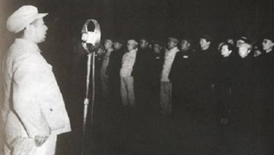 圖為參加中國人民政治協(xié)商會議第一屆全體會議的代表在天安門廣場舉行“人民英雄紀(jì)念碑”奠基典禮,周恩來代表主席團(tuán)在奠基儀式上致詞 圖片來源:人民網(wǎng)