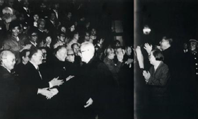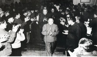 圖為1978年3月,中央統(tǒng)戰(zhàn)部舉行宴會(huì),招待各民主黨派和中華全國工商業(yè)聯(lián)合會(huì)(以下簡(jiǎn)稱“全國工商聯(lián)”)負(fù)責(zé)人,中共中央副主席、中國人民政治協(xié)商會(huì)議第五屆全國委員會(huì)主席鄧小平,中國人民政治協(xié)商會(huì)議第五屆全國委員會(huì)副主席烏蘭夫出席了招待會(huì) 圖片來源:人民網(wǎng)