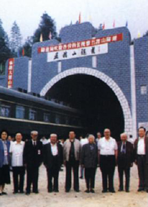 1995年5月,各民主黨派中央、全國工商聯(lián)負(fù)責(zé)人和無黨派代表人士考察即將正式運(yùn)營(yíng)的京九鐵路。圖為考察團(tuán)成員在五指山隧道留影。左起:劉延?xùn)|、吳階平、程思遠(yuǎn)、費(fèi)孝通、王兆國、雷潔瓊、王光英、錢偉長(zhǎng)、萬國權(quán) 圖片來源:人民網(wǎng)