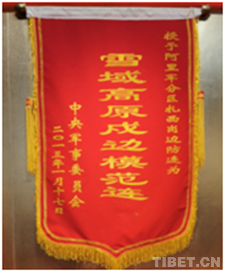 2013年1月17日,習(xí)近平總書(shū)記簽署命令,授予扎西崗邊防連“雪域高原戍邊模范連”榮譽(yù)稱(chēng)號(hào)?,F(xiàn)在這面錦旗珍藏于阿里軍史館中。