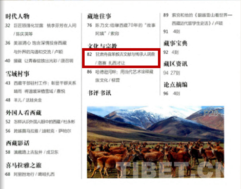 圖為洛賽在《中國(guó)西藏》雜志刊發(fā)的文章《甘肅舟曲苯教古文獻(xiàn)與傳承人調(diào)查》 圖片來(lái)源:截圖自《中國(guó)西藏》2016年 第1期 82-85頁(yè)