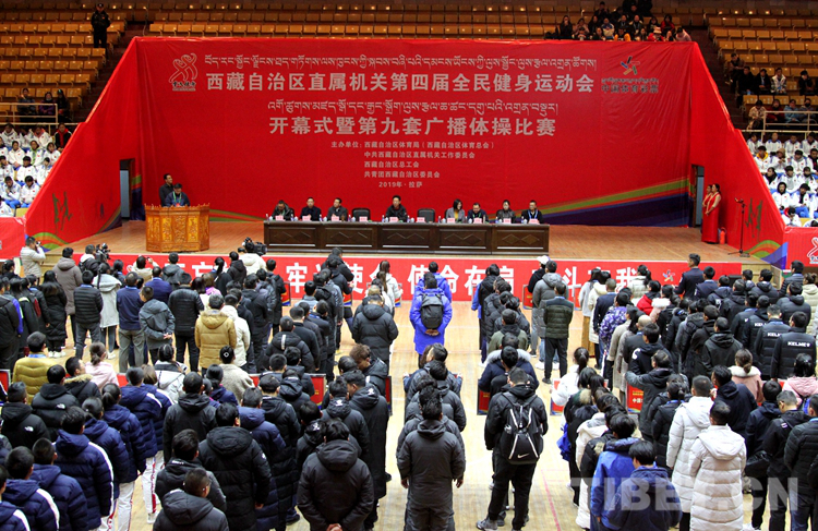 11月30日,西藏自治區(qū)直屬機關第四屆全民健身運動會在拉薩開幕,來自區(qū)中直各單位、企事業(yè)單位的運動員、觀眾代表在西藏體育館參加開幕式。