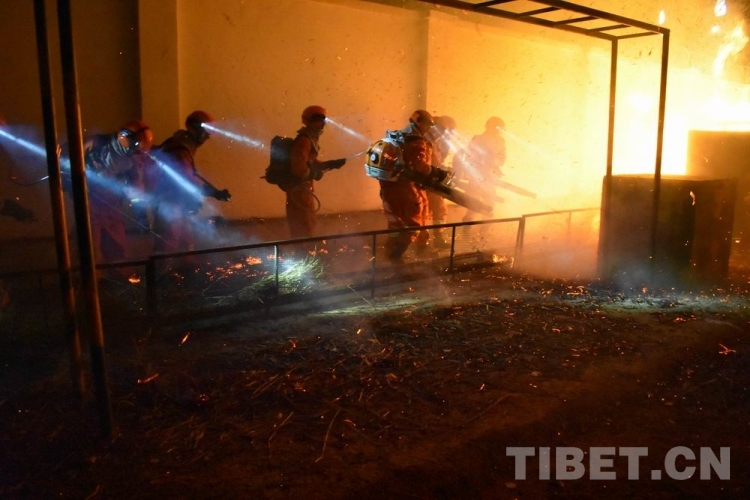 中國西藏網(wǎng)訊 12月17日晚,西藏自治區(qū)昌都市森林消防支隊左貢中隊展開了一場夜間實戰(zhàn)訓(xùn)練,場面火熱。圖為實戰(zhàn)訓(xùn)練中消防員們互相配合,撲打火線。