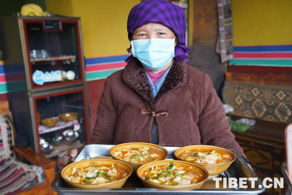 隨著時(shí)間的流逝,在縣委政府的幫扶以及嘎瑪旺堆一家的努力下,嘎瑪旺堆一家于2017年7月份正式提交了脫貧申請,摘掉了貧困戶的帽子。并憑著這些年積攢的積蓄和貸款的5萬元,在家門口開了一家茶館。茶館雖不大,但是嘎瑪旺堆將茶館和零售一體化,同時(shí)經(jīng)營藏面、肉餅、餃子、面條、藏炒面、蓋澆飯等菜品,生意很是紅火。