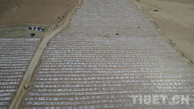 圖為已完成覆膜的優(yōu)質(zhì)飼草示范點(diǎn)田地