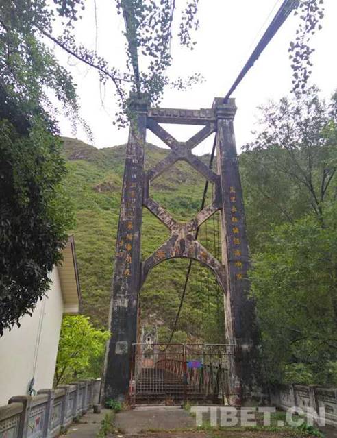 母親眺望遐思的一剎那,汽車已到大渡河橋前,車停了下來(lái)。看見(jiàn)橋頭上方環(huán)形鐵架上赫然鐫刻著四個(gè)蒼勁有力的大字“大渡河橋”,大字正上方釘著一個(gè)鮮艷的巨型“五角星”。母親猛然情急地問(wèn):“怎么這座橋不是瀘定橋嗎?怎么與我們課本上說(shuō)的不一樣?”年輕的司機(jī)爽朗地笑著說(shuō):“這座橋位于距離瀘定橋上游500米處,1950年,進(jìn)軍西藏的十八軍,在‘一面進(jìn)軍,一面建設(shè)’的號(hào)召下,為跨越大渡河天塹,又在水流湍急的大渡河上修建了第一座公路大橋——大渡河橋。大橋于1951年6月建成通車,西南軍區(qū)軍政委員會(huì)主席劉伯承揮筆寫下了‘大渡河橋’幾個(gè)遒勁有力的大字。”司機(jī)一邊招呼著母親下車,一邊接著又說(shuō)道:“你瞧,橋頭楹聯(lián)是朱德總司令題寫的:‘萬(wàn)里長(zhǎng)征猶記瀘關(guān)險(xiǎn),三軍遠(yuǎn)戍嚴(yán)防帝國(guó)侵。’”