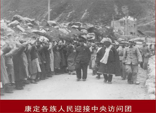圖為建州初期,康定各族人民迎接中央訪問(wèn)團(tuán) 圖片來(lái)源:甘孜日?qǐng)?bào)