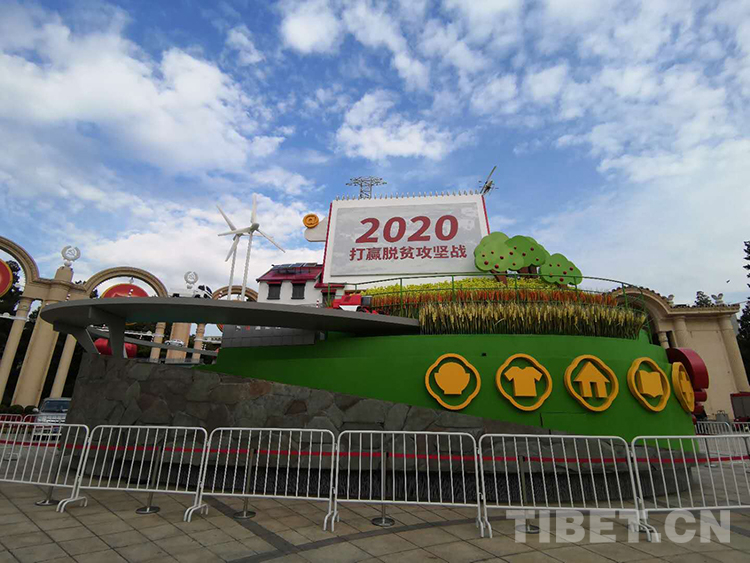 圖為曾在慶祝中華人民共和國成立70周年大會(huì)群眾游行方陣中亮相的脫貧攻堅(jiān)彩車,側(cè)面的黃色圖標(biāo)所代表的就是兩不愁、三保障 攝影:楊月云