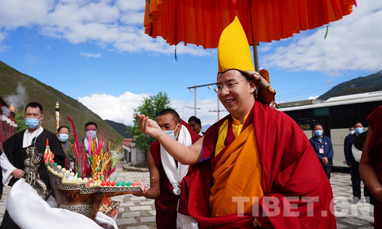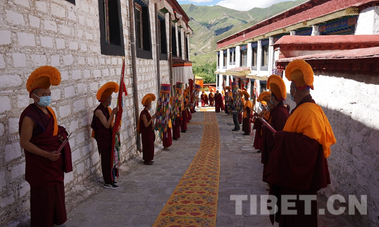 圖為8月4日,堆龍德慶區(qū)桑普寺僧眾列隊(duì)迎接十一世班禪的到來 攝影:王淑