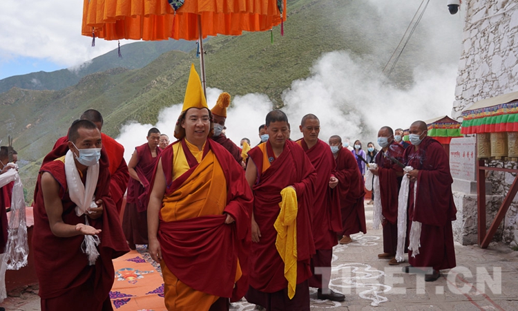 圖為8月5日,曲水縣熱堆寺僧眾列隊(duì)迎接十一世班禪的到來 攝影:王淑