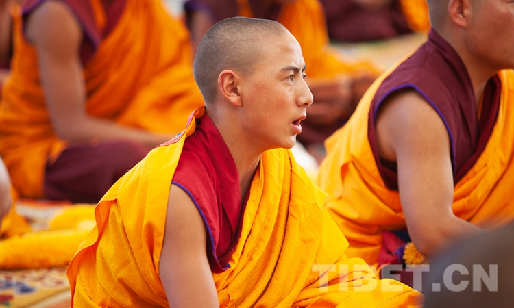 圖為十一世班禪在桑普寺誦經(jīng)祈愿 攝影:王淑