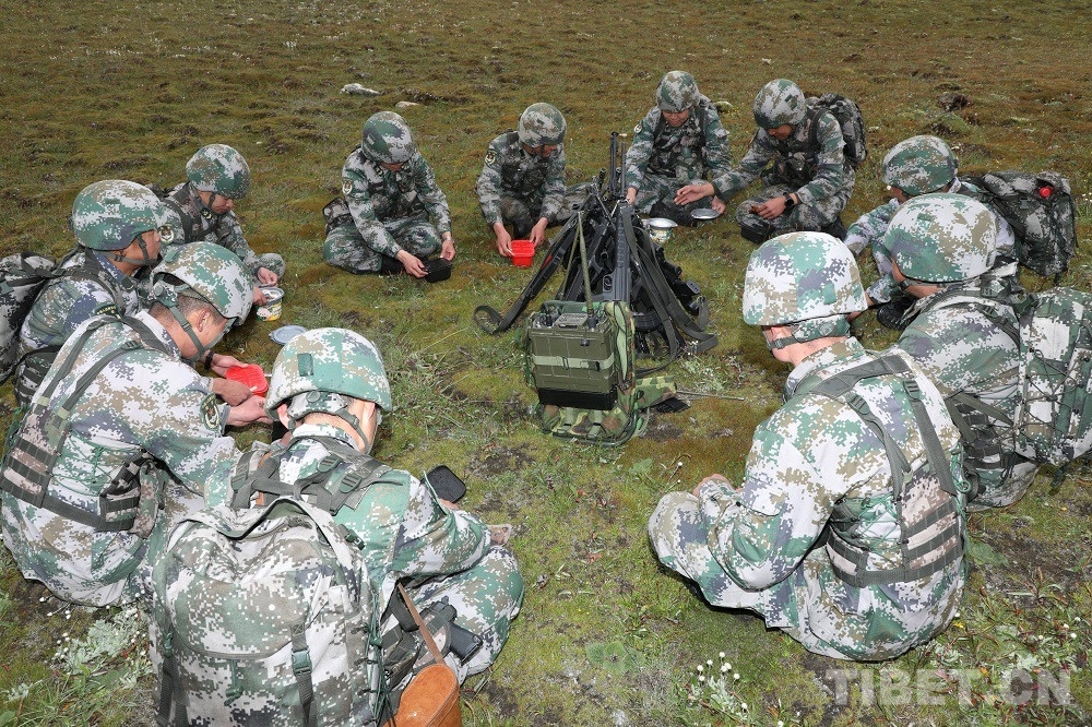 到達(dá)19號(hào)界樁后,巡邏官兵們坐在一起,拿出干糧,補(bǔ)充體力。在海拔5000多米的地方,連續(xù)翻山越嶺,體力嚴(yán)重透支,有些官兵一度出現(xiàn)高反,幸虧被戰(zhàn)友及時(shí)發(fā)現(xiàn),吸氧緩解后,大家開始向最終目的地18號(hào)界樁進(jìn)發(fā)。