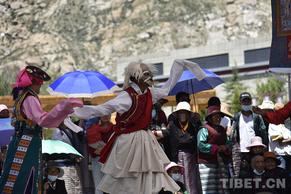 圖為2020年中國拉薩雪頓節(jié)期間,達(dá)孜德慶雪藏戲隊上演藏戲《卓娃桑姆》 攝影:王媛媛