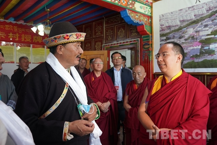 圖為十一世班禪與巴吉村村民對(duì)話 攝影:王淑