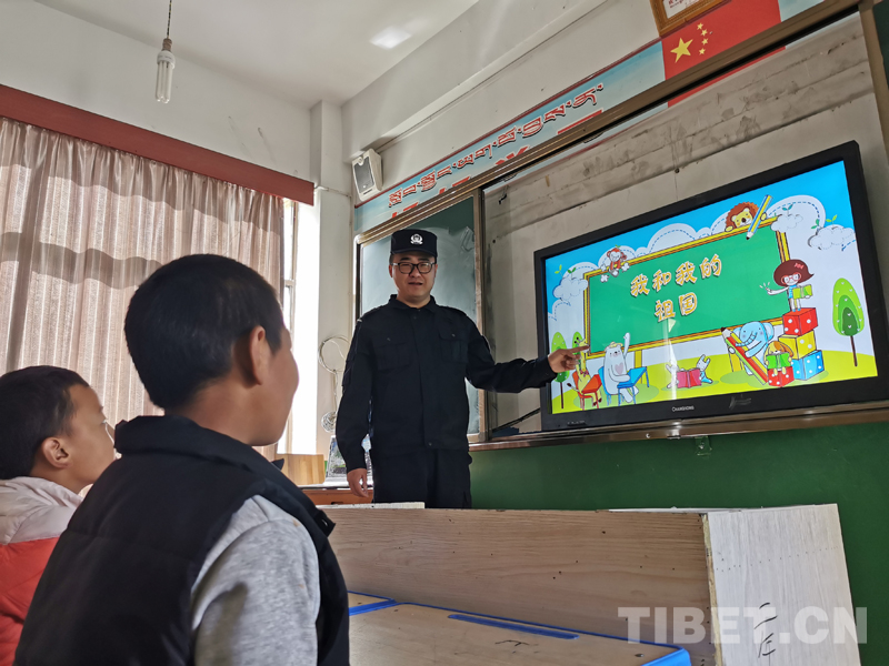 眼鏡老師來了,他上次講的未成年人保護(hù)法講得特別全面,他專業(yè)的知識(shí)和幽默的語言,使我學(xué)到了好多知識(shí),我特別喜歡聽他講課……”鄉(xiāng)小學(xué)五年級(jí)學(xué)生小卓瑪說。今天周四,恰逢教師節(jié),按照慣例,牟鑫會(huì)來上課。今天,他為同學(xué)帶來的主題是愛國主義情懷,在授課的過程中,他用通俗易懂的言語講述黃繼光、邱少云等革命先輩們不惜赴湯蹈火、英勇就義的偉大壯舉,讓愛國主義精神在廣大學(xué)生的心中扎根,培養(yǎng)小學(xué)生的愛國之情、砥礪強(qiáng)國之志、實(shí)踐報(bào)國之行。