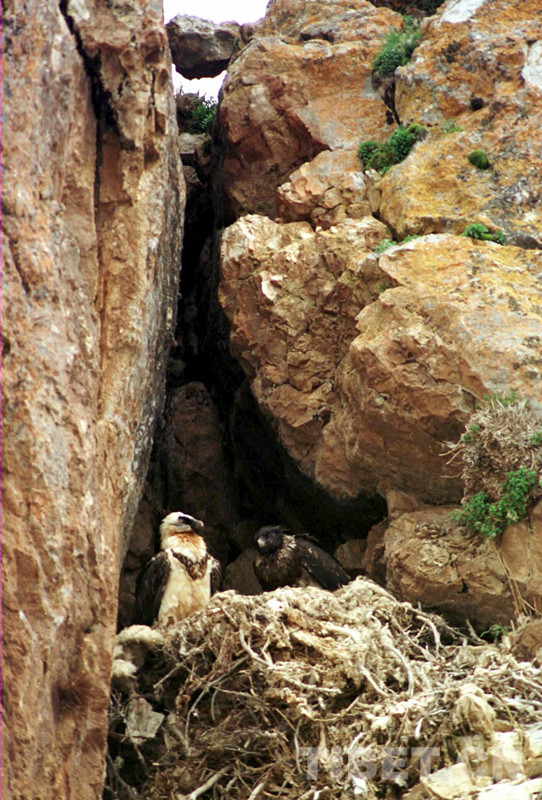 科考人員在科考中發(fā)現(xiàn),在扎西多半島西北角突兀懸崖峭壁上有一個(gè)很大的胡兀鷲雜草屋,只見(jiàn)雌鳥(niǎo)飛出飛進(jìn),在給4個(gè)月大小的雛鳥(niǎo)喂食。這種頭頂和后頸為白色、頭頂周圍有一圈黑羽,長(zhǎng)有胡須、腹部為褐色的胡兀鷲,體長(zhǎng)1米多。