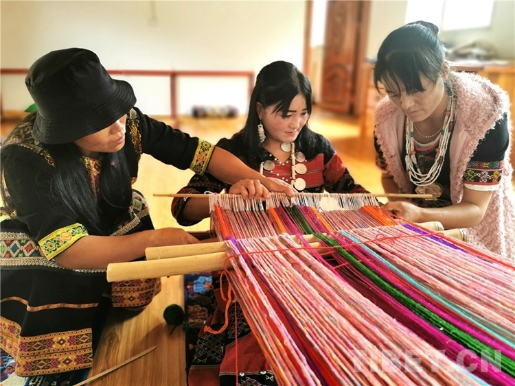 圖為正在制作傳統(tǒng)織物的珞巴族婦女