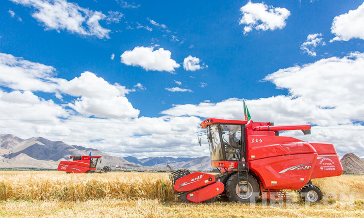 圖為江孜縣青稞機(jī)械化收割現(xiàn)場(chǎng) 攝影:趙耀