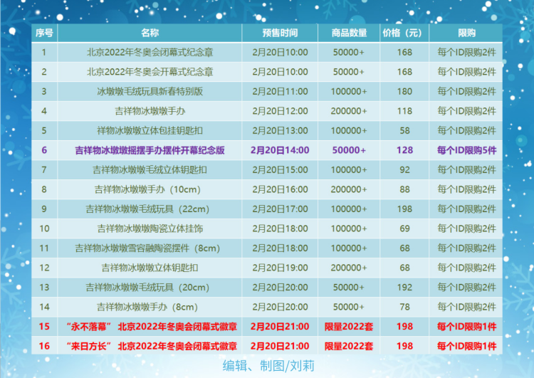 記者整理出了2月20日開放預(yù)售的所有特許商品的有關(guān)情況,此前遺憾沒(méi)能擁有冰墩墩的網(wǎng)友們,這次應(yīng)該有望實(shí)現(xiàn)“一戶一墩”。