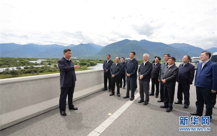 2021年7月21日上午,習近平總書記乘車來到林芝尼洋河大橋,考察雅尼濕地。遠眺水波蕩漾、草木蔥蘢的雅尼濕地,聽取雅魯藏布江及尼洋河流域生態(tài)環(huán)境保護和自然保護區(qū)建設(shè)等情況。習近平強調(diào),要堅持保護優(yōu)先,堅持山水林田湖草沙冰一體化保護和系統(tǒng)治理,加強重要江河流域生態(tài)環(huán)境保護和修復,統(tǒng)籌水資源合理開發(fā)利用和保護,守護好這里的生靈草木、萬水千山。(圖片來源:新華網(wǎng) 攝影:新華社記者 李學仁)