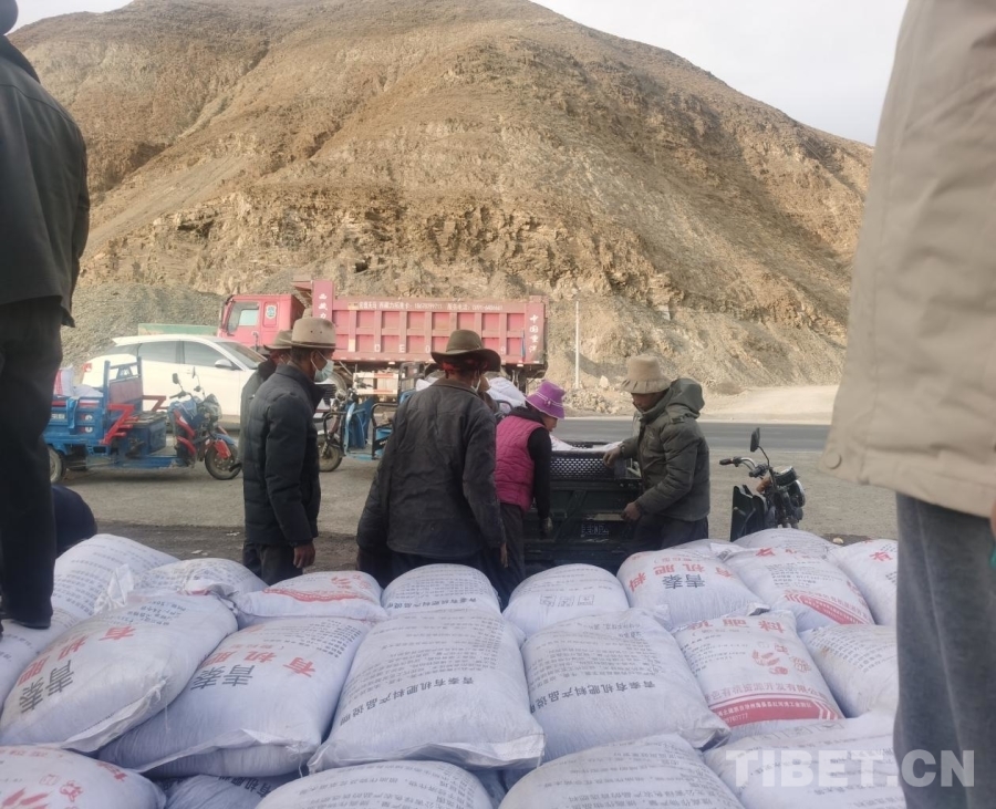 圖為駐村工作隊(duì)協(xié)調(diào)20噸有機(jī)肥并組織群眾領(lǐng)取