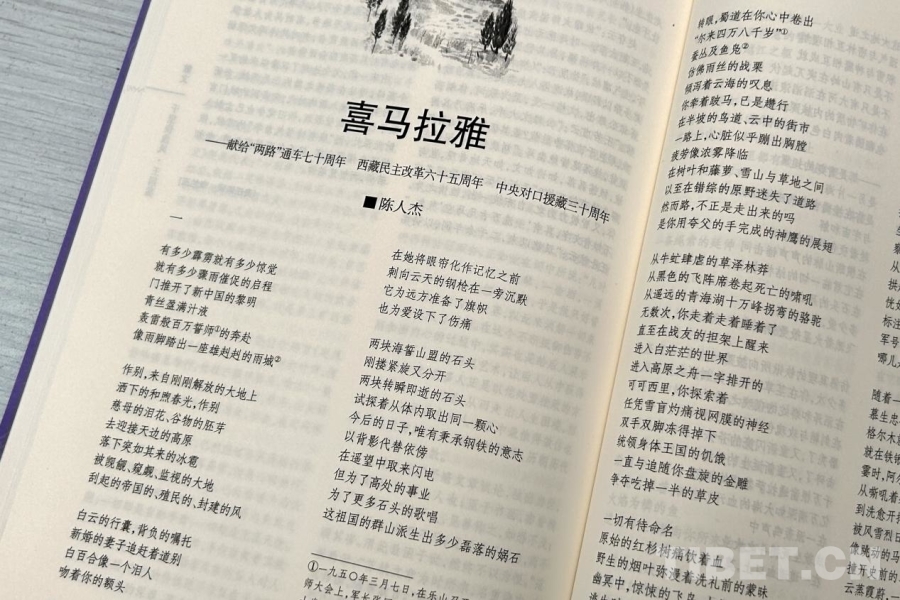 從地理喜馬拉雅到“千行詩(shī)”《喜馬拉雅》,第八屆魯迅文學(xué)獎(jiǎng)獲得者、西藏自治區(qū)文聯(lián)副主席,同時(shí)也是本詩(shī)創(chuàng)作者陳人杰感慨萬(wàn)千。創(chuàng)作這首凝練了“兩路”通車70周年、西藏民主改革65周年、中央對(duì)口援藏30周年歷史性事件,涵蓋了西藏前世今生到新時(shí)代西藏變化的長(zhǎng)詩(shī),并非易事。歷經(jīng)文思淤堵、無(wú)從下筆,到靈光乍現(xiàn)、一氣呵成,陳人杰表示:“《喜馬拉雅》的出爐,是天時(shí)地利人和,是新時(shí)代新征程的使然,是西藏的饋贈(zèng),是眾水般心靈澄澈的力量匯聚起的浩蕩的贊歌。”