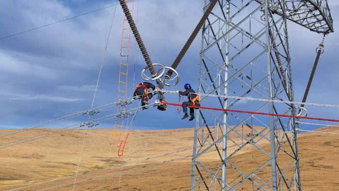 圖為國(guó)網(wǎng)西藏電力工作人員開(kāi)展巡視巡檢工作
