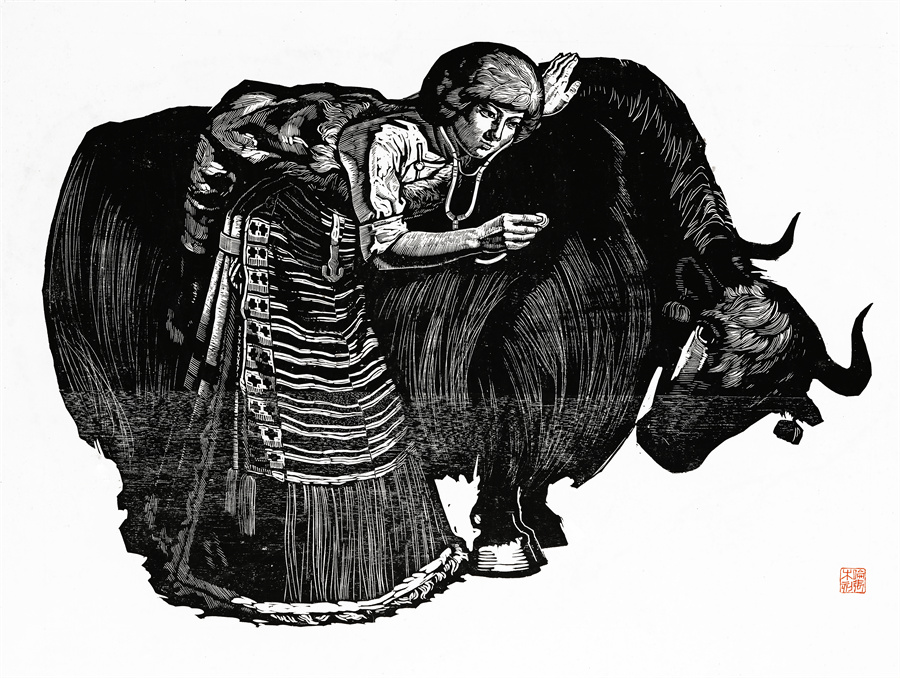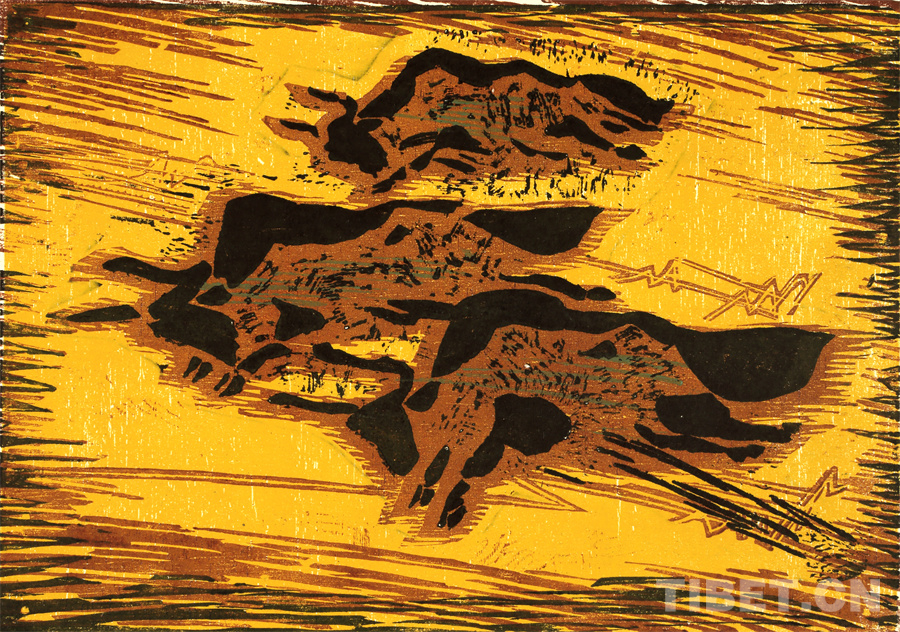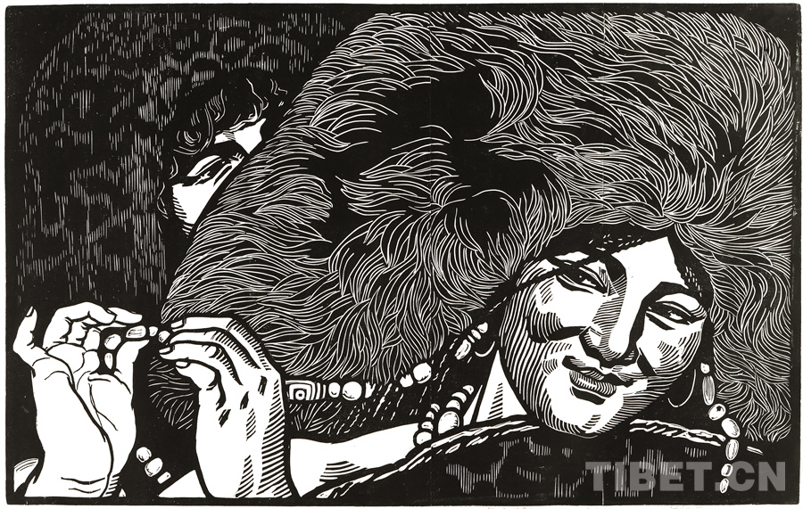 這些年來(lái)可以肯定的是我的創(chuàng)作道路和方向是基本對(duì)頭的。前幾年有人寫(xiě)文章評(píng)論說(shuō),在外來(lái)思想影響已很豐富、多元化格局已經(jīng)形成的情況下,差不多只有版畫(huà)還恪守著現(xiàn)實(shí)主義的創(chuàng)作道路,而且在美術(shù)領(lǐng)域起到了導(dǎo)向作用。順便為版畫(huà)說(shuō)句話:搞版畫(huà)的人一直尊重生活,認(rèn)定生活是第一性的,版畫(huà)一開(kāi)始就是在革命的環(huán)境中發(fā)生、發(fā)展起來(lái)的。版畫(huà)隨著四大發(fā)明發(fā)源于中國(guó)的土壤,后來(lái)被歐洲發(fā)展了,反過(guò)來(lái)又影響到中國(guó)。老大的中國(guó)有發(fā)明權(quán),但并沒(méi)有把它發(fā)展起來(lái)。魯迅先生為了推動(dòng)版畫(huà)的發(fā)展,特別介紹了德國(guó)版畫(huà)和俄羅斯版畫(huà)為代表的版畫(huà)代表作和代表人物,還有美國(guó)的肯特,比利時(shí)的麥綏萊爾。介紹文字很精彩,無(wú)論對(duì)生平、對(duì)作品的介紹都很精彩。他推出的那些版畫(huà)大師,至今仍巍然屹立在美術(shù)史上。他對(duì)版畫(huà)的深刻而獨(dú)到的理解很可貴。國(guó)外有些不很知名但有好作品的,他也介紹到。而且給我們指出哪些是范本,我們一看果然耳目一新。魯迅先生的提倡影響了中國(guó)版畫(huà)的發(fā)展,進(jìn)入了一個(gè)嶄新的階段,形成所謂新興版畫(huà)。這段時(shí)間并不長(zhǎng),也就六七十年吧。版畫(huà)統(tǒng)領(lǐng)潮流,面向生活的潮流。所以它的路子就很正,這個(gè)正就是正統(tǒng),一直發(fā)展得很健康。我從小就受影響,我當(dāng)時(shí)所看到的版畫(huà)都是反映民間生活的東西:戰(zhàn)爭(zhēng)年代反映民間的疾苦與災(zāi)難,和平年代反映民眾的感情和生活,所表現(xiàn)的風(fēng)景也由平常人眼中投射。一句話就是為人民服務(wù)指導(dǎo)下的藝術(shù)創(chuàng)作。如果問(wèn)我的作品和生活的距離有多大,可說(shuō)距離是小的,并未受到更多潮流的干擾,并未背離為人民服務(wù)的方向。正因如此,我要把西藏題材表現(xiàn)好,表現(xiàn)在一個(gè)理想的藝術(shù)高度上,而且這一高度還能讓一般欣賞者達(dá)到。我的理想就是這樣,要達(dá)到這一目標(biāo)看來(lái)還很費(fèi)勁。