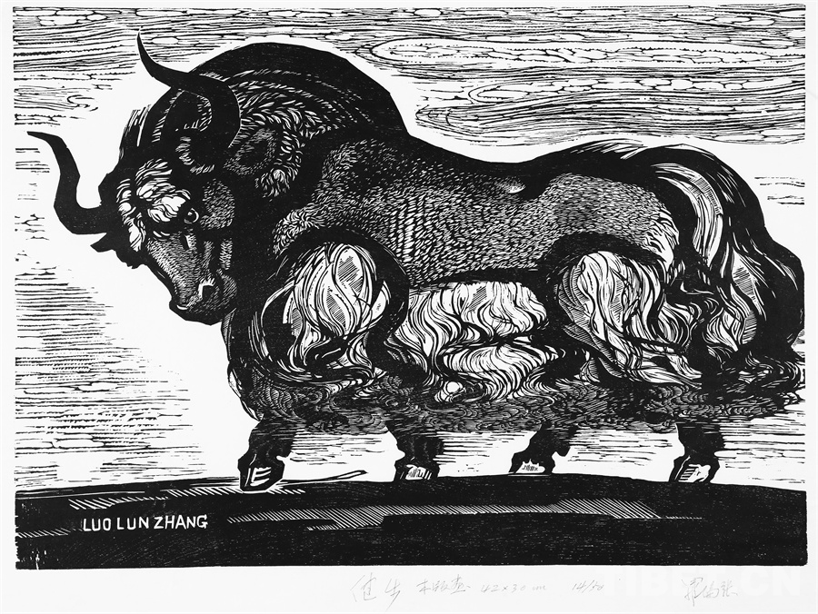 如果非要說(shuō)我在版畫(huà)技法上有什么創(chuàng)新,參照西藏匠人刻經(jīng)文,在石頭上刻出來(lái)然后印出來(lái)也許就算。這不是一般石版畫(huà)概念,那叫石印,平版印刷;我這是凹版印刷??唐饋?lái)很費(fèi)勁,我也不管費(fèi)不費(fèi)勁。我有一批這樣的石刻作品。綜合版作品手法較多,我通常分別在石板和木板上刻,然后套起來(lái)印。如果搞學(xué)術(shù)交流,也許值得一談。至于說(shuō)到創(chuàng)新,第一我不認(rèn)為我有什么創(chuàng)新,第二我不認(rèn)為在藝術(shù)上、在美術(shù)上能夠輕易談創(chuàng)新這個(gè)詞。還有第三個(gè)觀點(diǎn):不需要?jiǎng)?chuàng)新。很簡(jiǎn)單,你先把傳統(tǒng)學(xué)到手再說(shuō)。既是傳統(tǒng),就有它的存在理由,否則早就夭折了,還傳什么統(tǒng)呢?傳,而且統(tǒng)?。〗y(tǒng)是什么意思?基調(diào)是它統(tǒng)一起來(lái)的。先把傳統(tǒng)學(xué)到手,爐火純青了,神來(lái)之筆出現(xiàn)了,才有可能有所創(chuàng)造?;A(chǔ)是重要的。