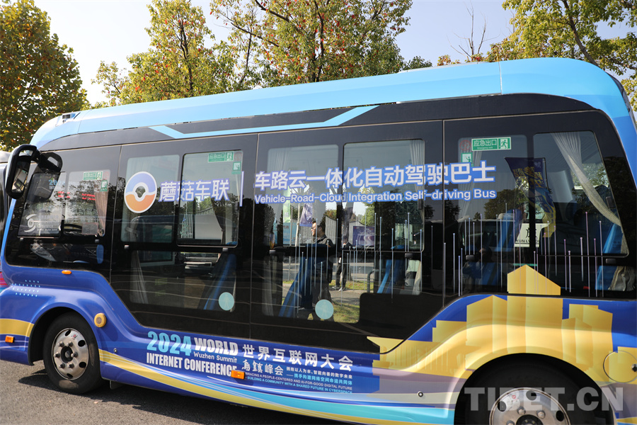 圖為車路云一體化自動(dòng)駕駛巴士,這也是該巴士首次應(yīng)用亮相世界互聯(lián)網(wǎng)大會烏鎮(zhèn)峰會,在既定路線里該巴士可以自動(dòng)駕駛和規(guī)避行人車輛 攝影:王妍丹