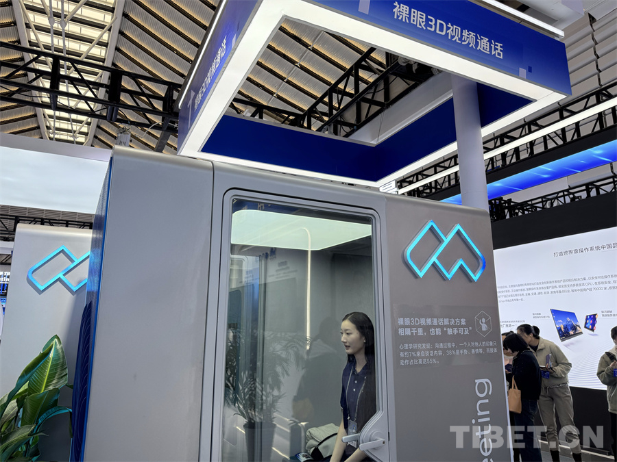圖為裸眼3D視頻通話,讓人們相隔千里,也能“觸手可及” 攝影:王妍丹
