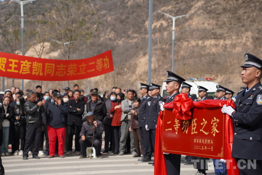 中國西藏網(wǎng)訊 近日,西藏邊檢總站山南邊境管理支隊(duì)跨越千里遠(yuǎn)赴甘肅省慶陽市華池縣,與駐地公安局、退役軍人事務(wù)局及地方黨委政府等組成送獎隊(duì)伍,為榮立個人二等功的王彥凱同志“送獎到家”。