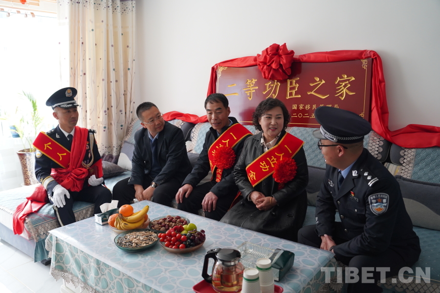 圖為山南邊境管理支隊(duì)開展二等功臣“送獎到家”活動現(xiàn)場