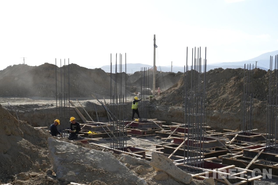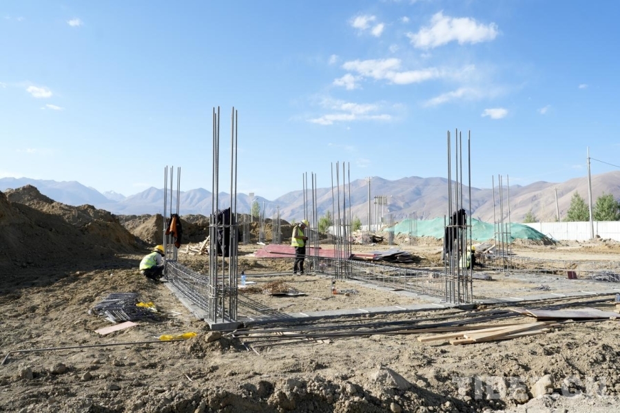 在雜村,一座座安置板房間,婦女們圍坐一起編織氆氌,孩子們玩鬧嬉戲,時有工作人員入戶進(jìn)行安全排查、普法宣傳,生活一如往常平靜安寧。而在距離安置點(diǎn)不遠(yuǎn)處的工地上,卻呈現(xiàn)出一片繁忙的景象——運(yùn)輸車穿梭其間,機(jī)器轟鳴,工人忙著將箍筋固定在地基中,雜村重建工作正有序而迅速地推進(jìn)著。