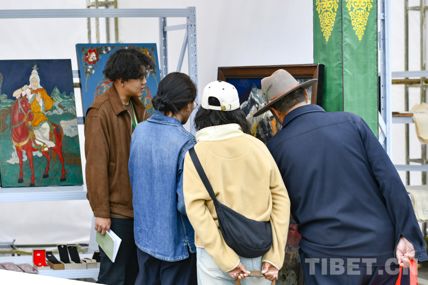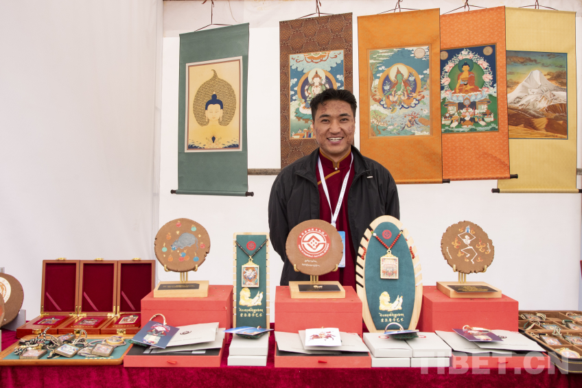 在集市的另一頭,是昌都市瑪吉阿媽唐卡畫院所展出的唐卡漆畫?!捌岙嬀哂欣L畫和工藝的雙重屬性。我們畫院主要是傳承嘎瑪嘎赤畫派的藝術(shù)作品,但近年來我們將傳統(tǒng)畫派藝術(shù)和福建漆畫進(jìn)行了有機(jī)結(jié)合,以漆畫的工藝結(jié)合唐卡的審美,創(chuàng)作出一系列作品。這些唐卡漆畫不僅在西藏很受歡迎,也有其他省份的人士向我們定制。”多吉告訴記者,每一件唐卡漆畫都融合了西藏傳統(tǒng)故事、傳說等文化內(nèi)涵,不僅是一件藝術(shù)品,更是向外界展示西藏優(yōu)秀傳統(tǒng)文化的窗口。