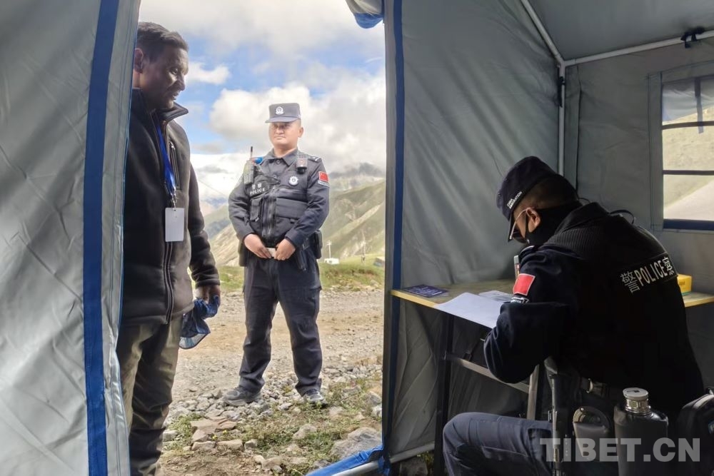 圖為吉隆出入境邊防檢查站民警正在貢當(dāng)傳統(tǒng)邊貿(mào)點登記入境邊民信息 攝影:向巴澤平