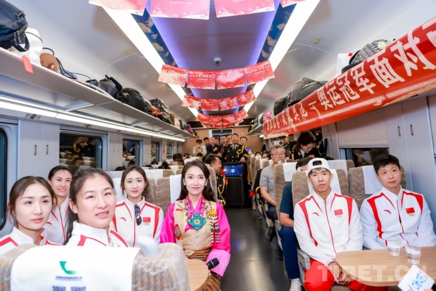 圖為7月19日,奧運冠軍一行乘坐復興號前往西藏拉薩