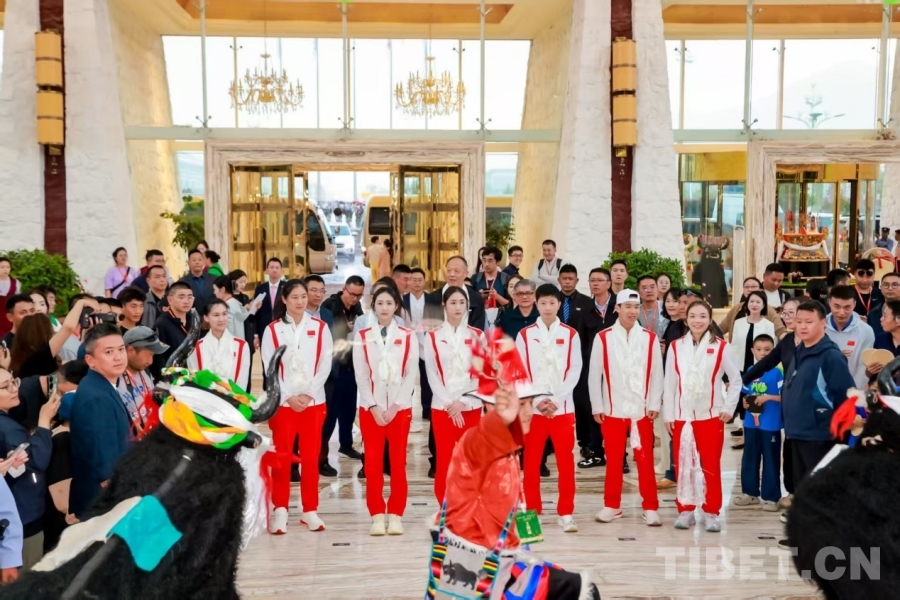 圖為奧運冠軍一行抵達西藏拉薩,受到熱烈歡迎