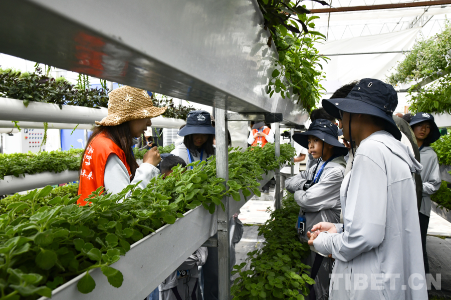 研學(xué)第二站來到曲水縣才納鄉(xiāng)現(xiàn)代農(nóng)業(yè)產(chǎn)業(yè)園。在無土栽培展館中,學(xué)生們了解了高原特色作物育種、溫室物聯(lián)網(wǎng)控制等現(xiàn)代農(nóng)業(yè)技術(shù)?!霸瓉聿恍枰寥乐参镆部梢蚤L(zhǎng)這么好??!”來自研學(xué)團(tuán)的旦增卓瑪在直觀了解無土栽培技術(shù)后興奮地說。