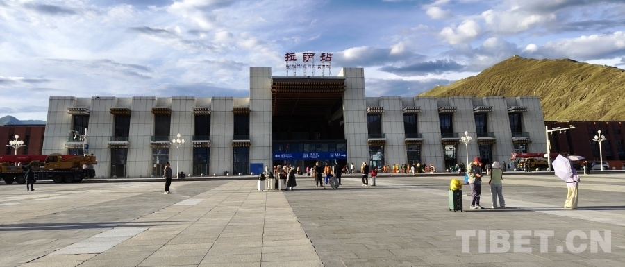 圖為8月1日開放后的拉薩站前廣場(chǎng)