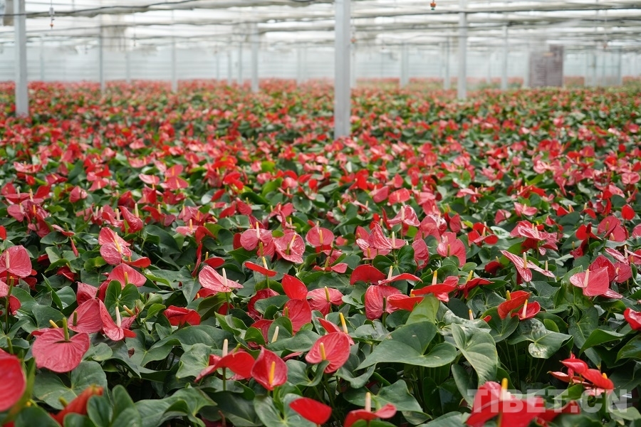 文成公主種下民族團(tuán)結(jié)的種子,在今天依舊開(kāi)出鮮艷的花。才納園區(qū)總投資6億元,其中江蘇援藏資金1.5億元。紅掌花卉基地就是江蘇省泰州市產(chǎn)業(yè)援藏的一個(gè)典范,基地由泰州國(guó)有企業(yè)蘇中園藝公司和才納園區(qū)合作建設(shè),總面積16畝,溫室規(guī)模1萬(wàn)余平方米,年可生產(chǎn)鮮花10萬(wàn)盆。