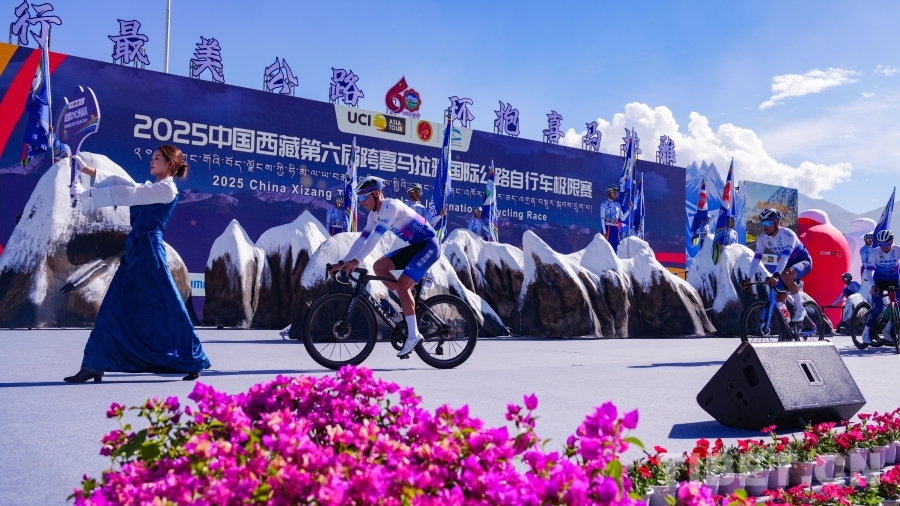 圖為2025中國(guó)西藏第六屆跨喜馬拉雅國(guó)際公路自行車極限賽開幕式現(xiàn)場(chǎng) 攝影:次旦拉姆