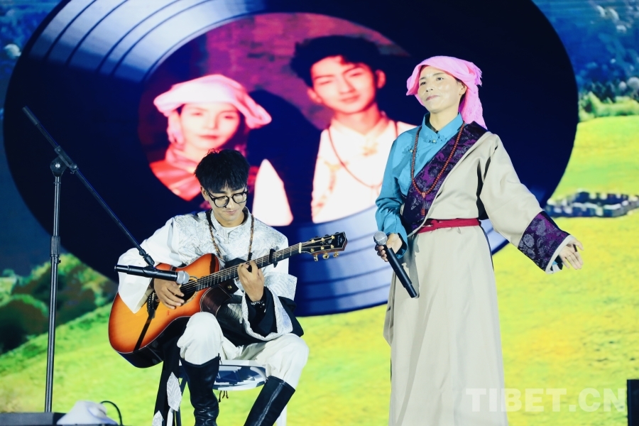 圖為歌手組合丹正母子在啟幕儀式上演唱了其代表作歌曲《別哭》《大風(fēng)吹過青瓦房》,贏得臺下歡呼陣陣。攝影:龍真多吉